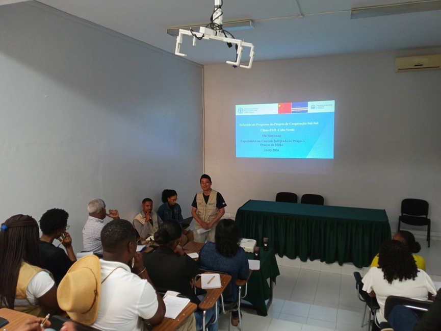 On February 16–17, 2026, the project wrap-up meeting on integrated pest management for maize under the China-FAO-Cape Verde South-South Cooperation Project was held in São Jorge, Cape Verde. The meeting was hosted by the FAO Representation in Cape Verde and organized by the National Institute of Agricultural Development under the Ministry of Agriculture and Environment. More than 30 participants attended the event, including members of the FAO Representation in Cape Verde, experts of the South-South Cooperation Project, project partners and agricultural technicians from the National Institute of Agricultural Development and the General Directorate of Agriculture, Forestry and Livestock of Cape Verde.